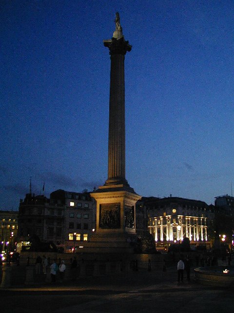 Trafalgar Square by Night, photo by Bob Bowyer. Reproduced under Creative Commons Attribution-Share Alike 2.0 Generic license.