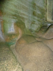 Did the hermitage really have its beginnings in a tale of murder and lost love? It’s unlikely, but nobody is sure. Certainly, there are figures, now worn by the weather, carved into the hermitage’s stonework. There is a tomb with an effigy that appears to depict a woman’s image with a warrior (or hermit?) kneeling at her feet. And surrounding one of the chapel’s windows, are more figures. The generally accepted view, disputed by some, is that they represent the nativity—Mary with the baby Jesus on one side of the window, Joseph on the other.