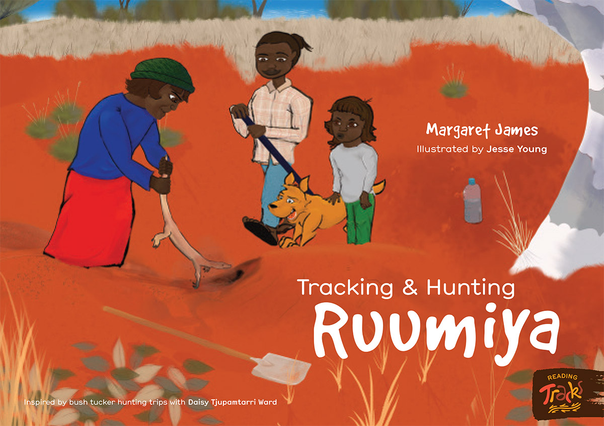 A young girl, her older sister and their cousin set out on a goanna hunt. (The Luritja word for goanna is ‘Ruumiya’.) ‘The goanna is sleeping because it is winter, and its body slows down in the cold.’ The family group catch a goanna, gut it, and cook it under hot coals. Later, they ‘light the long, dry grass … so it will burn down and clear the country’, enabling them to ‘see the goannas’ burrows better next time’.