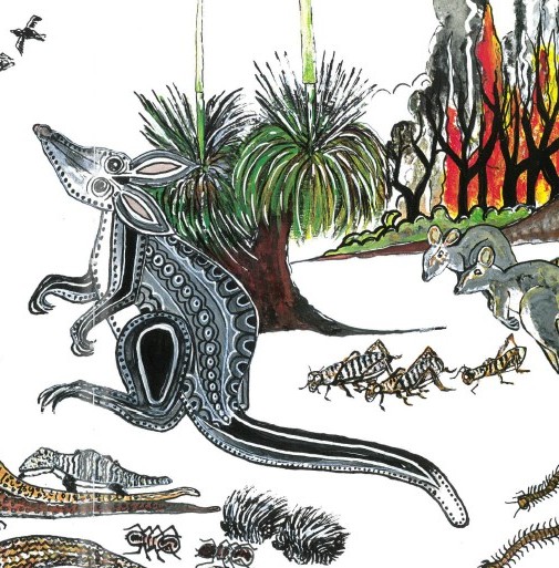 Three further picture books for very young children that feature the impact of bushfires on Australian fauna are Aleesah Darlison’s Mama and Hug (2016), Maryanne O’Flynn’s Polka Dot Float (2015), and Joanne Crawford and Grace Fielding’s Bilby and the Bushfire (2007). Bilby and the Bushfire is no longer in print, but it is available second hand and in some public libraries. It is worth seeking out for Fielding’s illustrations which combine traditional dot art with contemporary art styles.