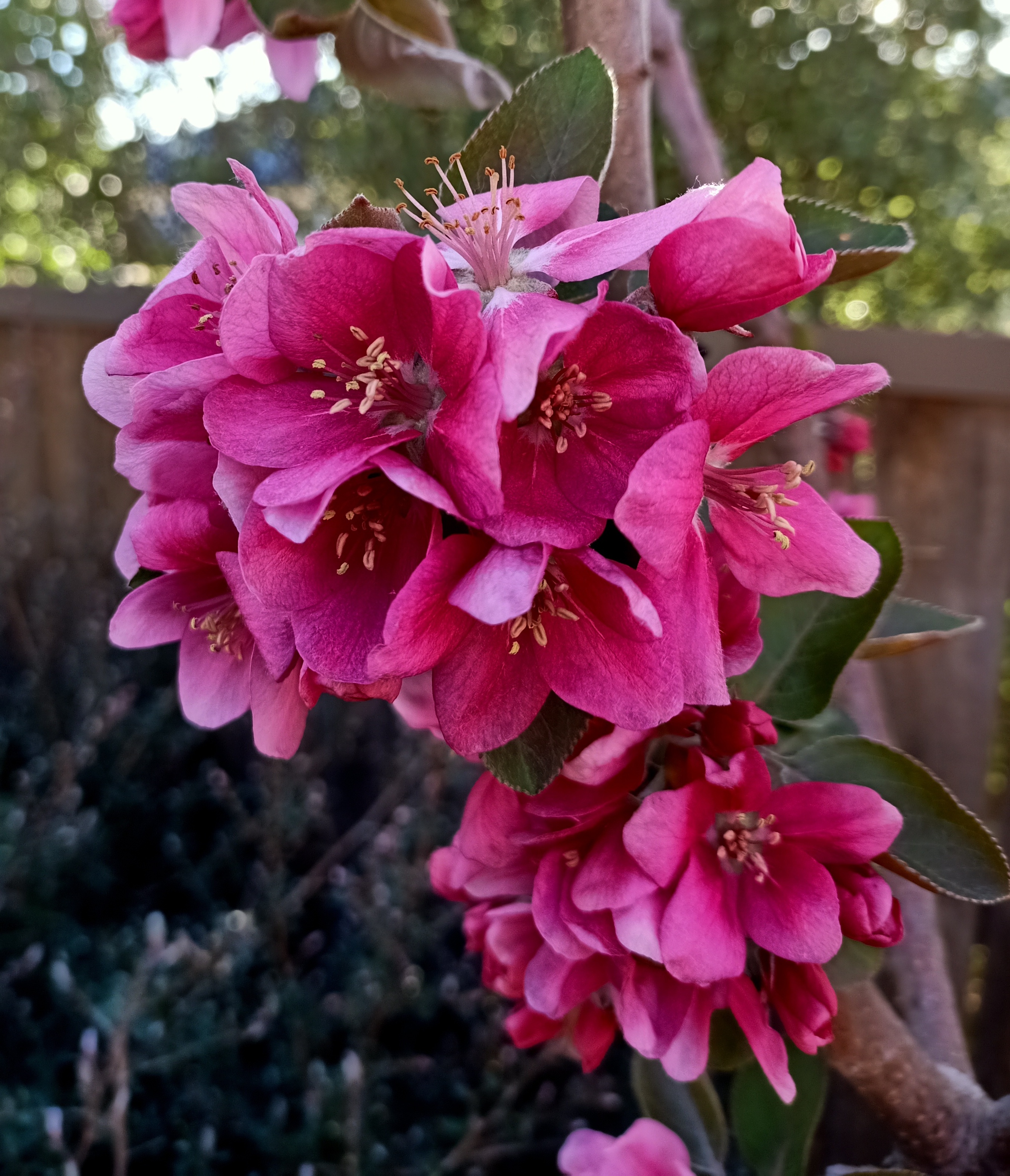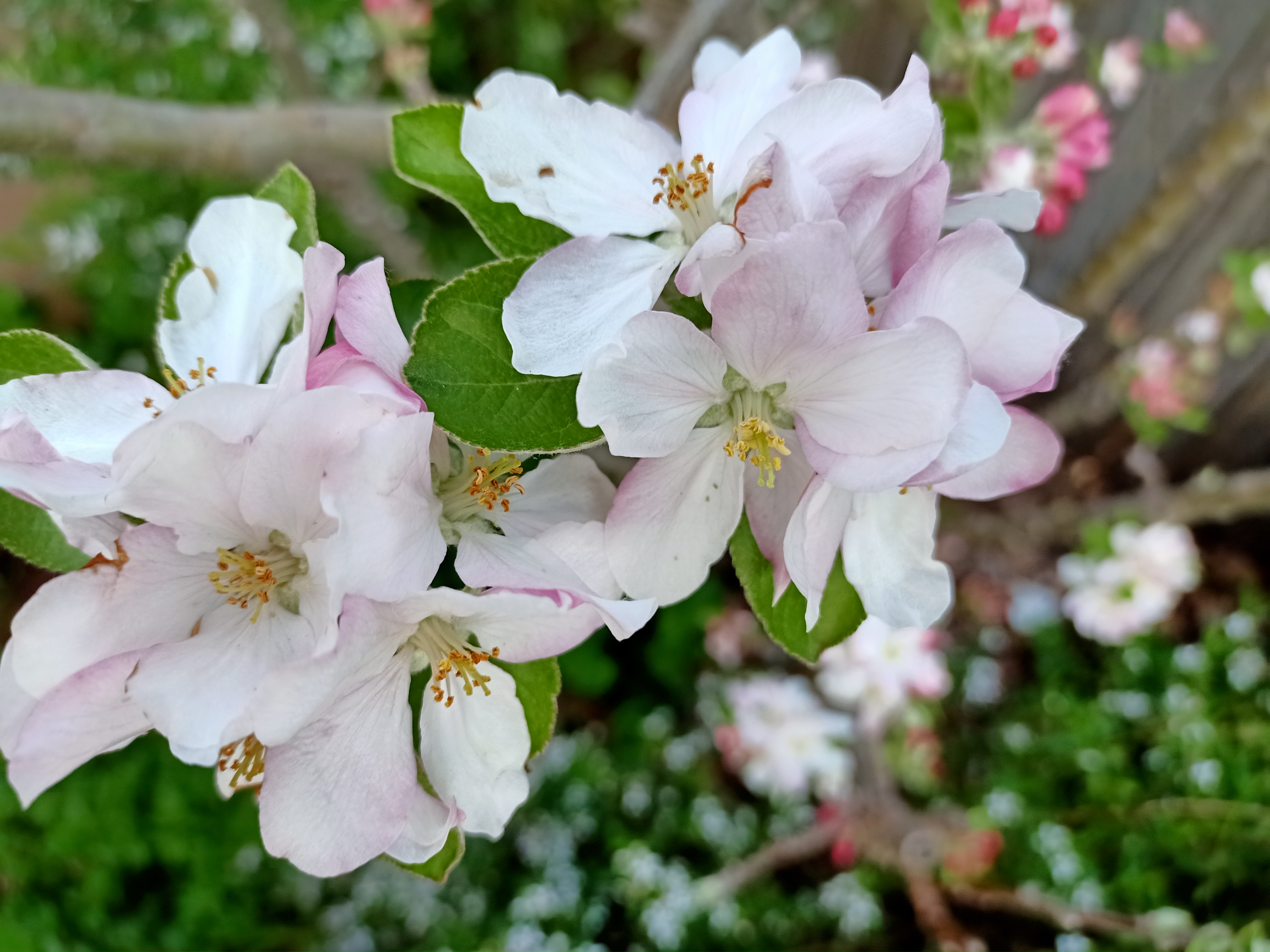 The ‘Maypole’ crab apple was first to announce Spring’s arrival in the garden. Then came the ‘Flamenco’ Ballerina apple and the ‘Trixzie’ pear (cv. Pyvert).
