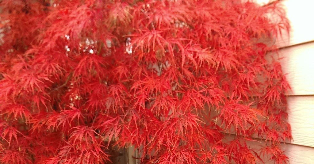 Through the kitchen window, the Japanese maple (Acer palmatum dissectum) coloured my days.