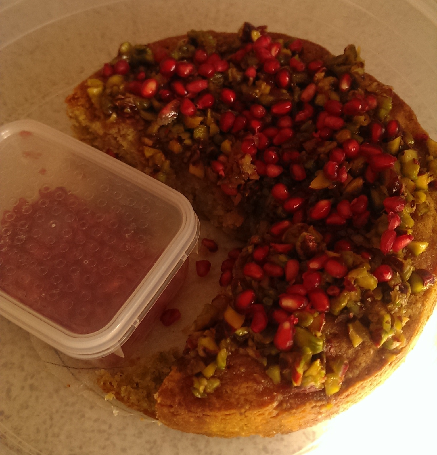 There were still some pomegranates on the tree in early Autumn. I made Barley and Pomegranate Salad, and ate it for days. No one else in the house seemed much interested. The response to Belinda Jeffery’s Pistachio and Lime Syrup Cake was rather more positive. It disappeared quickly.