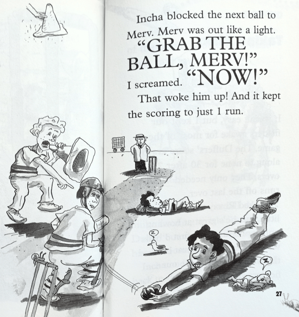 Michael Wagner has created three sports-themed series featuring young Maxx Rumble – two are football-based (Australian Rules football and soccer) and the third is Maxx Rumble: Cricket. Each cricket book is packed with the characters’ flair for imagination and hyperbole (matched by Terry Denton’s madcap illustrations) and the variation in font size suits beginning readers who are getting used to chapter books. The eight cricket titles are available separately or in one omnibus edition (although the physical size of the latter may be daunting for young readers).