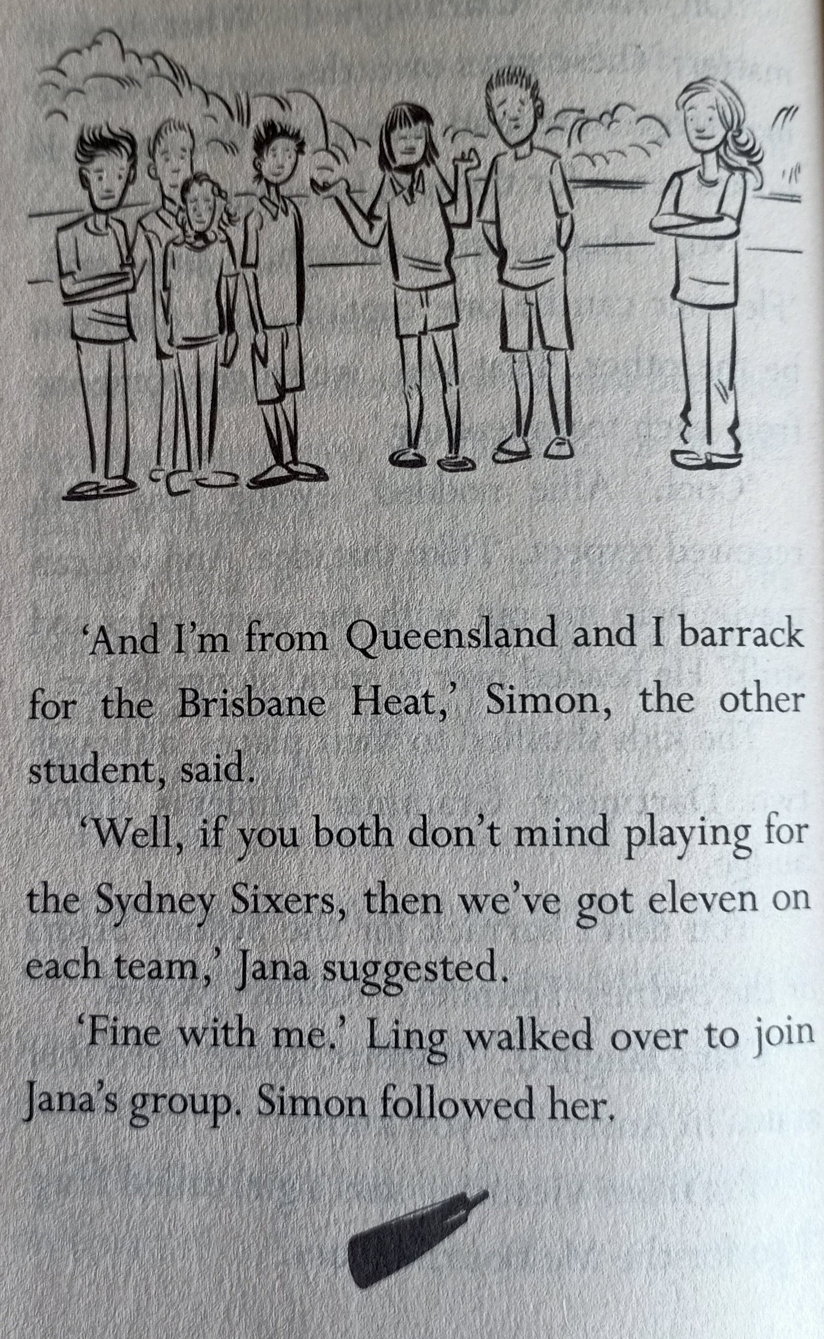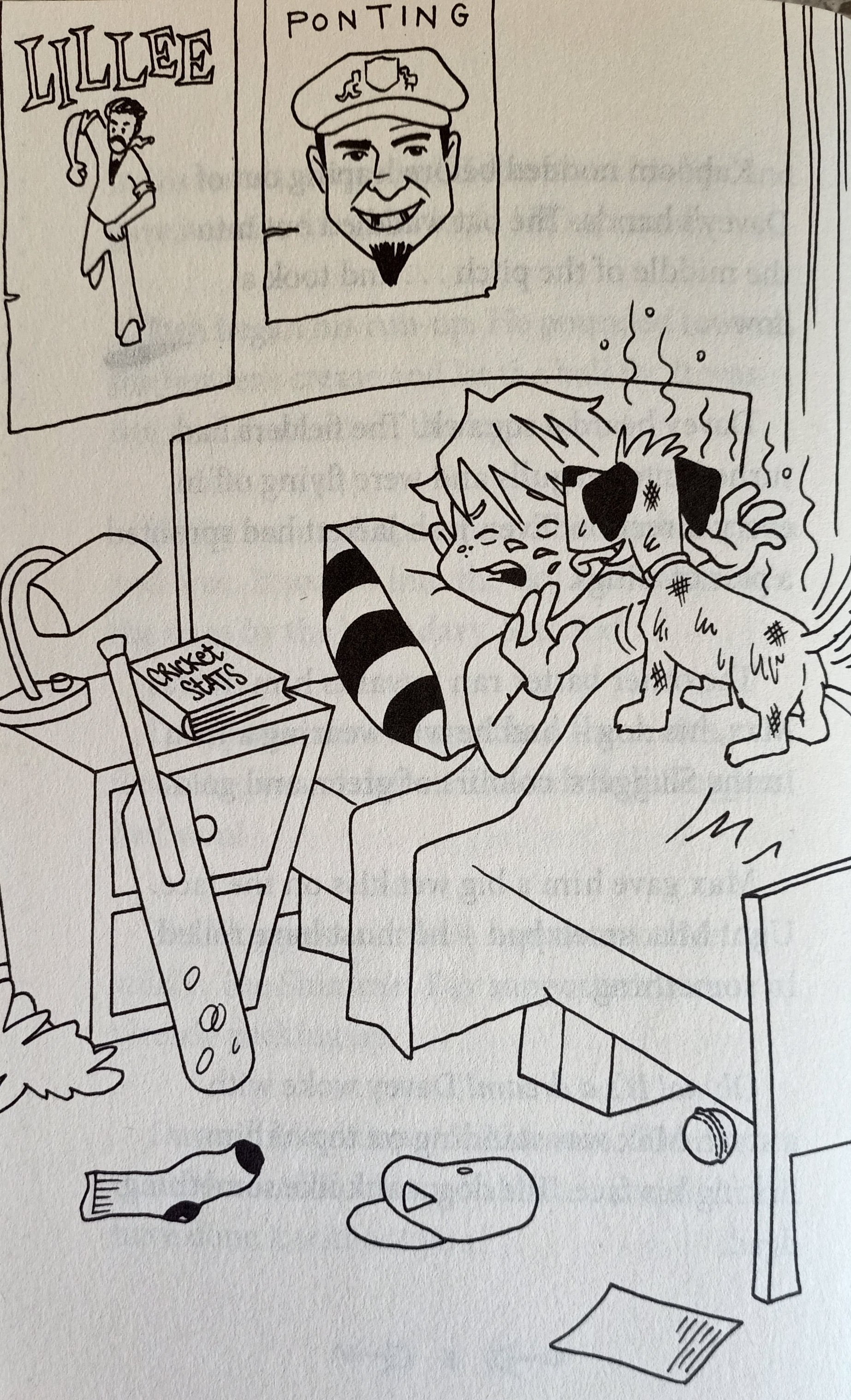 The books include some insider jokes (e.g. a character named Hayden Matthews and a cricket trophy called ‘The Cinders’). All books include a diagram of fielding positions and batting shots, along with a list of cricketing terms and their meanings.