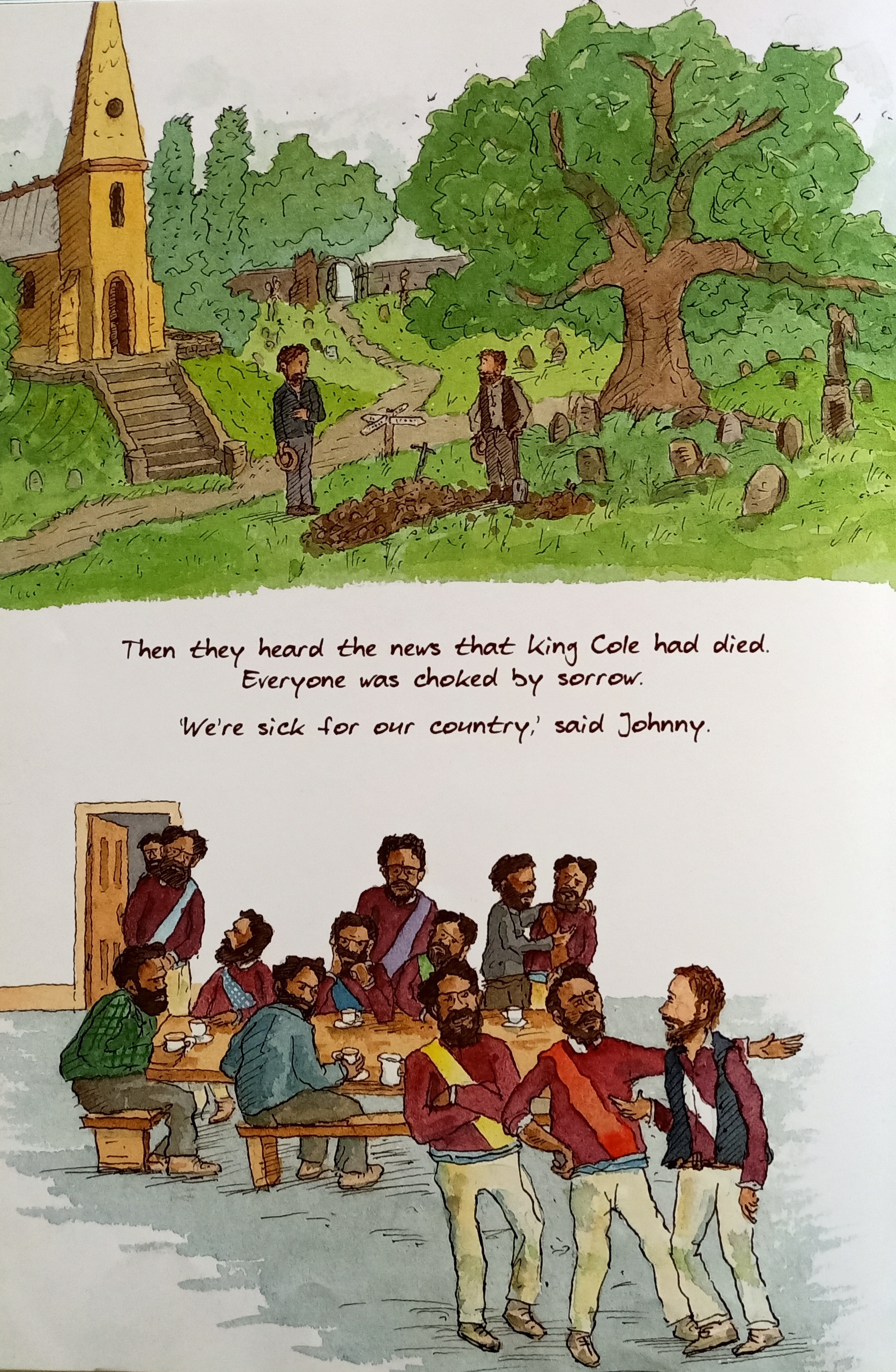 Boomerang and Bat tells the story of the first Australian cricket team to tour England – a team comprising Aboriginal players coached by English cricketer and Australian settler Charles Lawrence. Based on solid historical research, Greenwood’s text incorporates the challenges, discrimination and griefs that beset the touring team including the refusal of the Board for the Protection of Aborigines to allow the team to leave Australia (Lawrence smuggled them out) and the death in England of batter King Cole (Bripumyarrimin).
