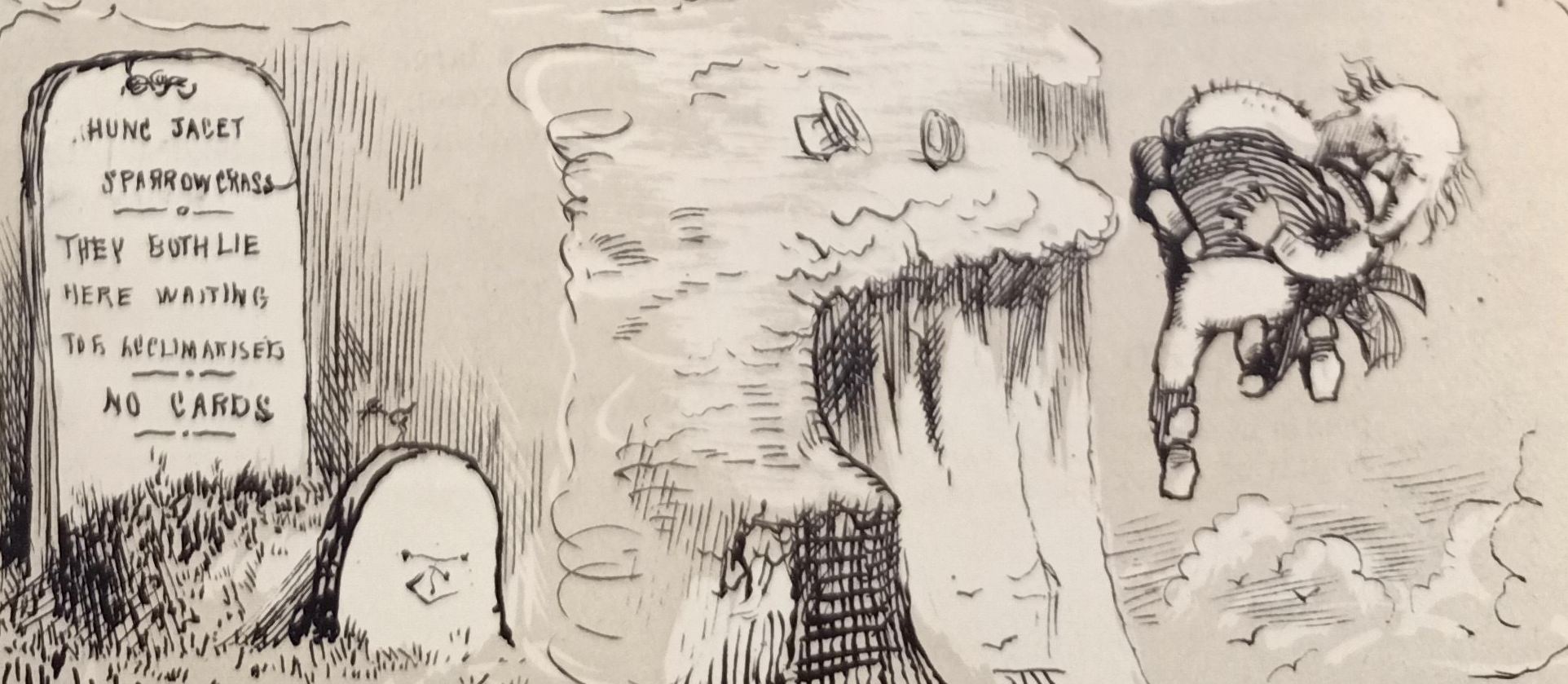 This change of heart is illustrated in a humorous tale published in Williams’s Illustrated Australian Annual in 1870. Two men, business partners and lifelong friends, find themselves on opposing sides of ‘The Great Sparrow Controversy’ and become ‘deadly enemies’. Their disagreement rages until they meet one day on the Geelong cliffs and become ‘locked in a deadly embrace of hate and malice’. Losing their balance, the former friends are dashed onto the rocks below.