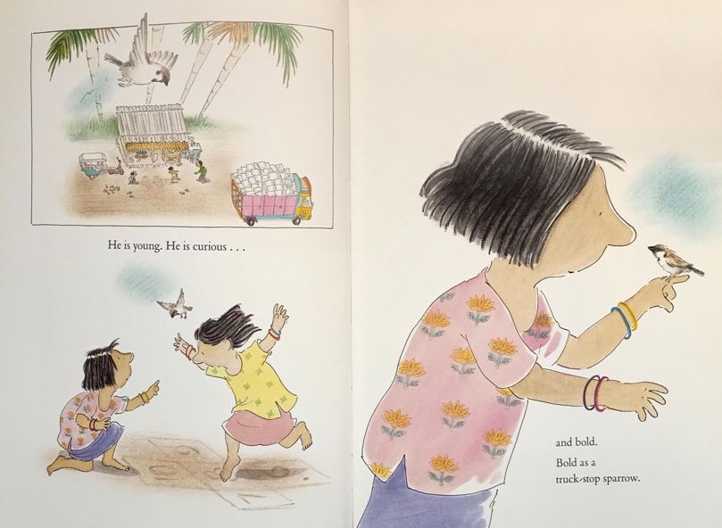 In Vanilla Ice Cream, a new sparrow arrives on Australia’s shores from India. In Graham’s picture book, this curious and bold truck-stop sparrow hops aboard a ship-bound cargo and eventually arrives at the Café Botanica in Sydney … perhaps near the very spot in the Botanic Gardens where Mr Quaife thought he saw a sparrow way back in 1857.